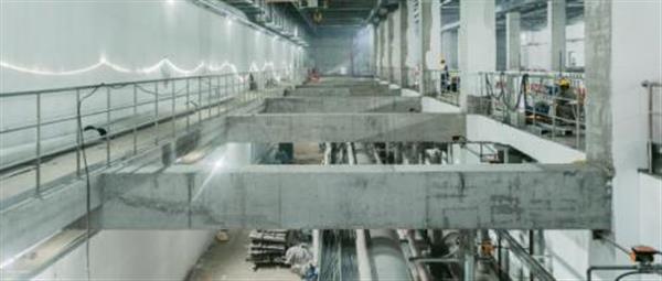 西安市第三污水處理廠并不只是簡單將地上的污水處理廠“下沉”,而是在充分考慮各類安全風(fēng)險等因素后,重新統(tǒng)籌功能分區(qū),實現(xiàn)資源整合的最優(yōu)配置。項目采用分層布置形式,地下一層為操作層,為設(shè)備調(diào)控中心和人力檢修中心,地下二層為水處理構(gòu)筑物和綜合管廊,污水處理廠的曝氣池、沉淀池等在這里“一應(yīng)俱全”。同時,項目團(tuán)隊結(jié)合施工方案對地下空間進(jìn)行多維度優(yōu)化,形成立體三維布置,通過優(yōu)化工藝流程、重組單元組團(tuán)、修改構(gòu)筑物布局等方式,提升空間利用效率,將項目占地用地減少了三分之二。
